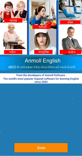 Anmoll English app is actually an Android version of popular Gujarati software for learning English - Anmoll English learning software. Anmoll stands for All new method of language learning. Anmoll software has been most popular among Gujarati speaking people worldwide since 2003 for learning to speak English easily at home in Gujarati medium. This is the most popular app extension of Anmoll English software. Our customers and well wishers had long standing demand to make it available on mobile devices to learn English in Gujarati on the move. Now easy learn to speak English / spoken English app in Gujarati is here to teach you English in Gujarati.Download free English app in Gujarati and start learning English.Free download English learning app in Gujarati to learn English in Gujarati for free.