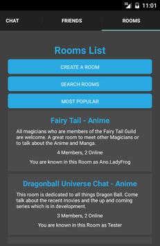 Come in and create a Chatroom about your favourite Anime, Game or TV Series, or join another user’s room to talk about common interests.
