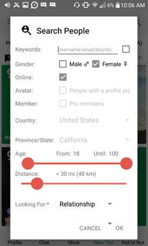 - Easily find your friends and or connect with local people using the advanced search feature (GPS).