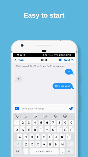 Anonymous chat for two is completely anonymous chat. We care about your privacy. No login needed = No obligations. Meet new people, talk to strangers, make new friends, share your ideas, open real you to the world. Best chatroulette / random chat.