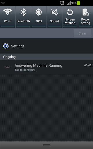- Going out of office but need to log incoming calls?- On a Vacation and need a break from calls but want to attend them later?- Wish you had an answering machine within your smartphone?Turn your little green robot into an "Answering Machine"!!!And enjoy *your* time without disturbance.features -- Minimalist Interface for easy usage- Continuous message reading mode- Different Recording mode (louder/system default)- Ring Delay added; now specify # of rings before receiving the call- background Mode addedIf you have problem/ suggestion regarding the application please feel free to contact us.