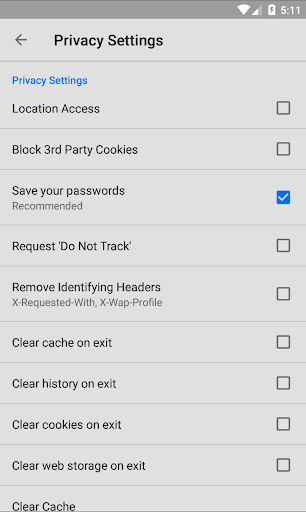 ★ Privacy options with quick access in settings to clear your cookies, cache, and granular history ...