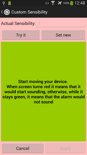 --> Now you can try the sensibility to see how your device will respond to moves.