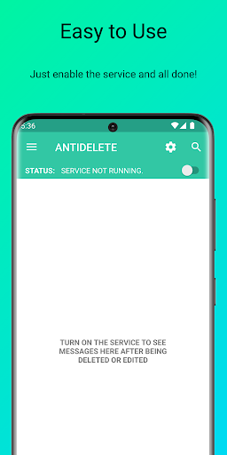 1. Open the Antidelete app and start the service by clicking on the toggle on the top right.