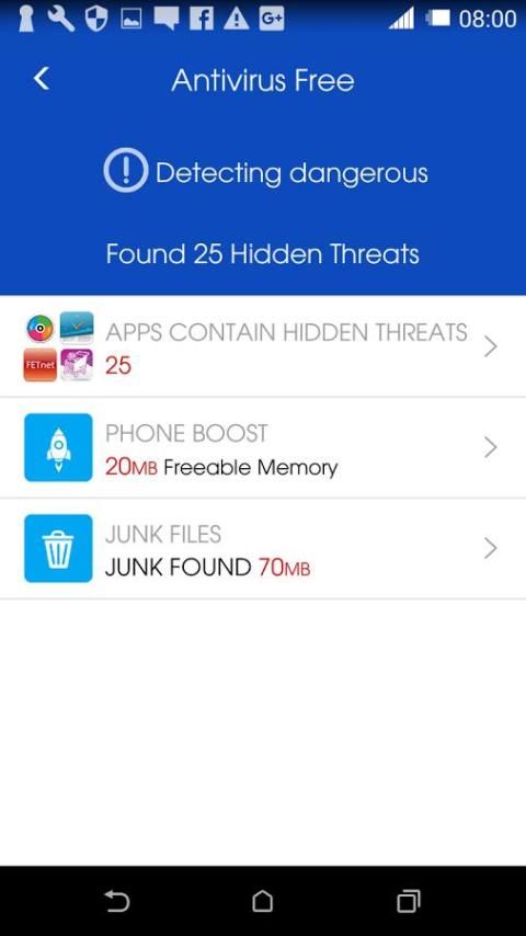 Antivirus Security is one of the best app for antivirus detect. This android app would be work with most of the android devices, smartphones and android tablets. You download this app through Google play.