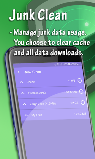- Manage junk data usage. You choose to clear cache and all data downloads.