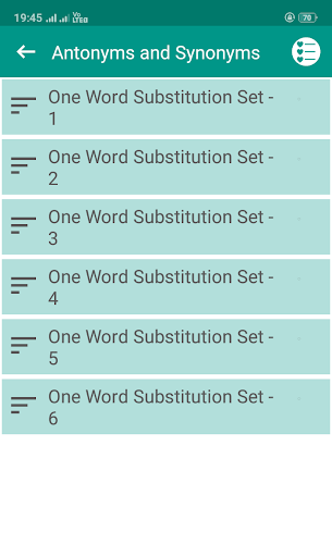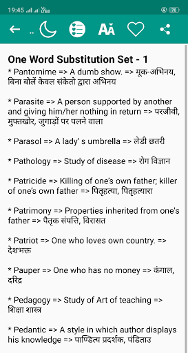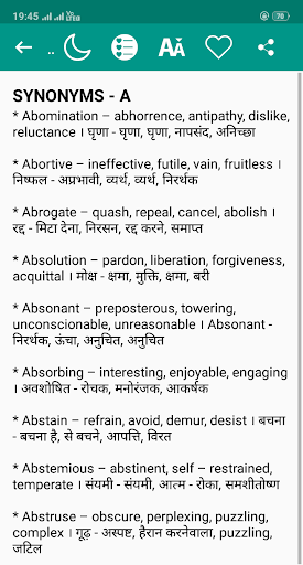 This app contains Synonyms, Antonyms, one word substitution & important vocab with Hindi meaning for a particular word.