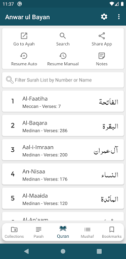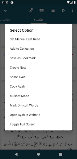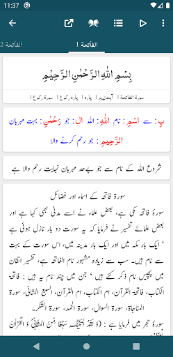 - Mushaf Mode: Recite Quran with Translation (Tarjuma) or Tafseer