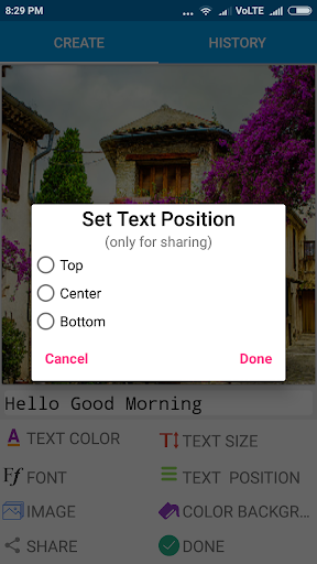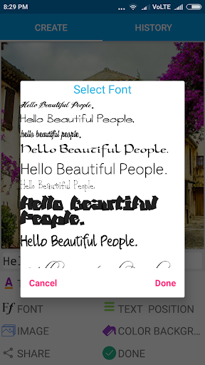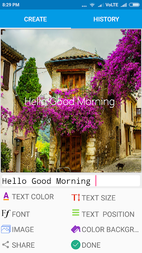 Write your phrases on top of images and share them with your friends on social networks like WhatsApp, Facebook, Gmail etc . Create texts with custom font, color, & sizes. Position the text and share it with friends or click done button to place the sticker on home screen from widgets section.