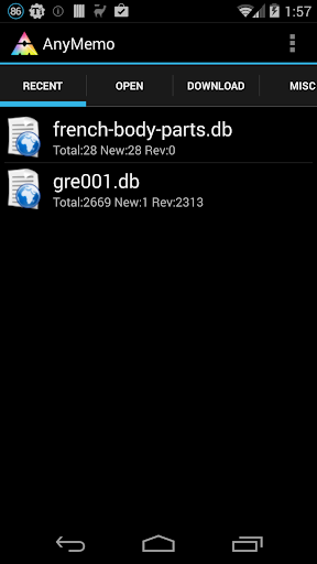 4. Download millions of flash card db to study Arabic, English, Chinese, Japanese, Spanish, German, French and also Computer, Religion and more from anymemo.org, flashcardexchange, quizlet or studystack