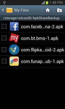Backup :Backup Apks to SDCard / External Storage . For the APK file on the SD card , you can delete the backup after the backup source , so you can manage in the same position on the APK file , default is "/sdcard/ApkShareBackup".