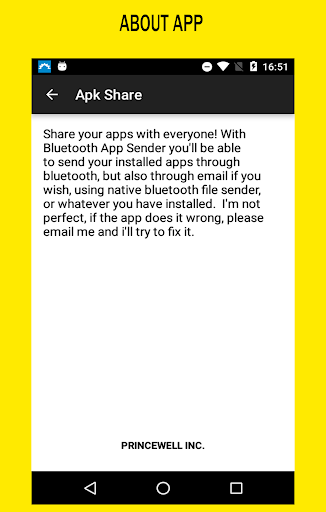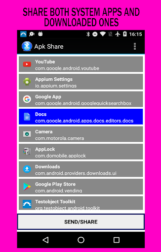 Share your apps with everyone! With Bluetooth App Sender you'll be able to send your installed apps through bluetooth, but also through email if you wish, using native bluetooth file sender, or whatever you have installed.
