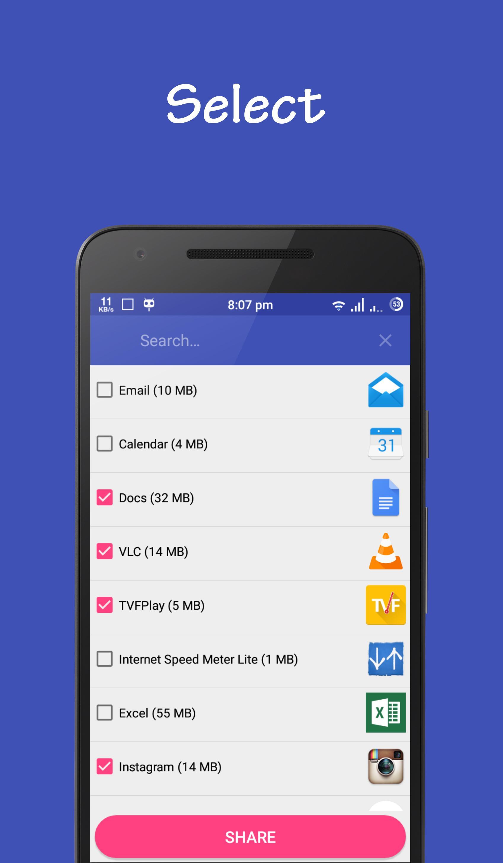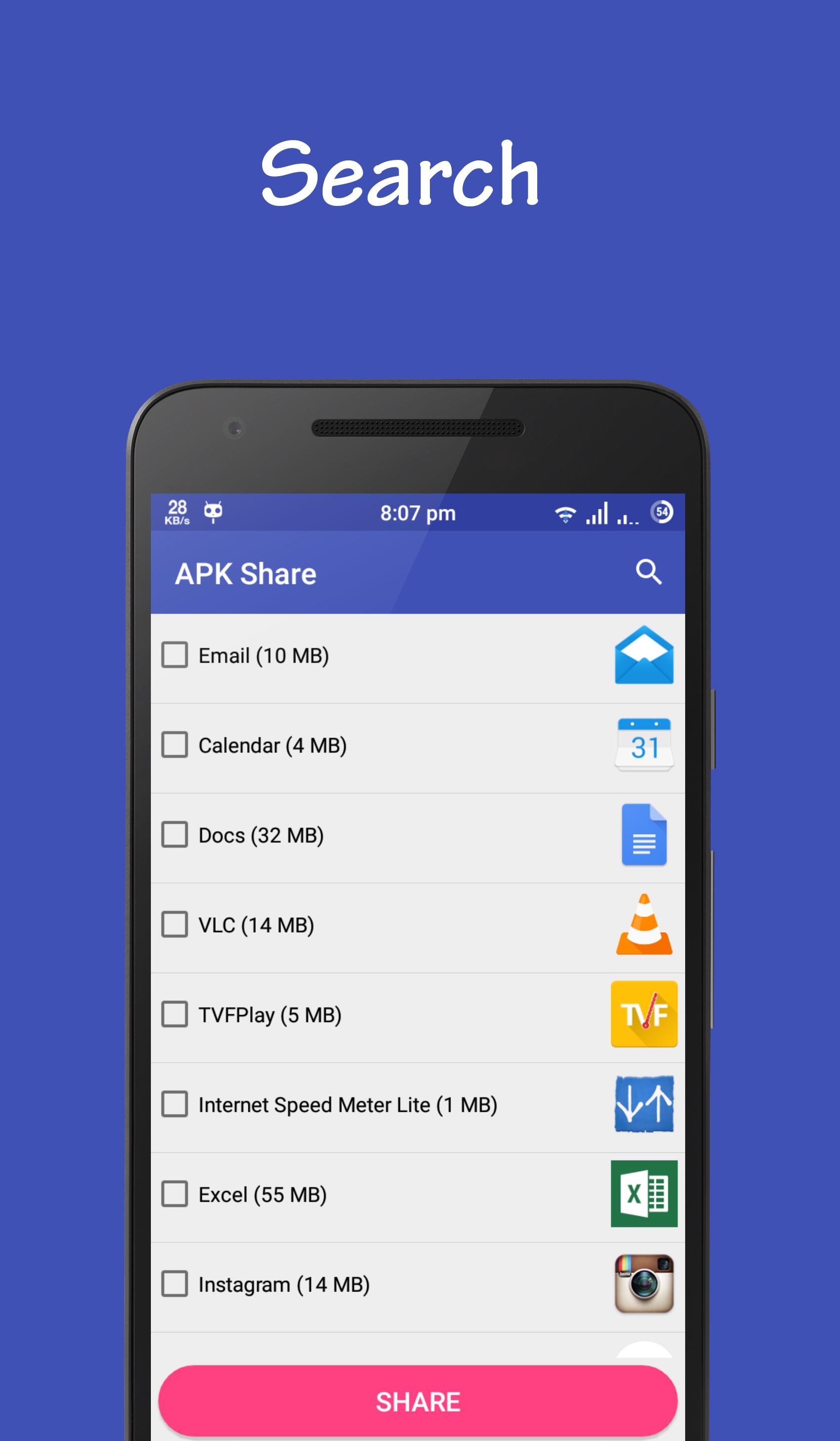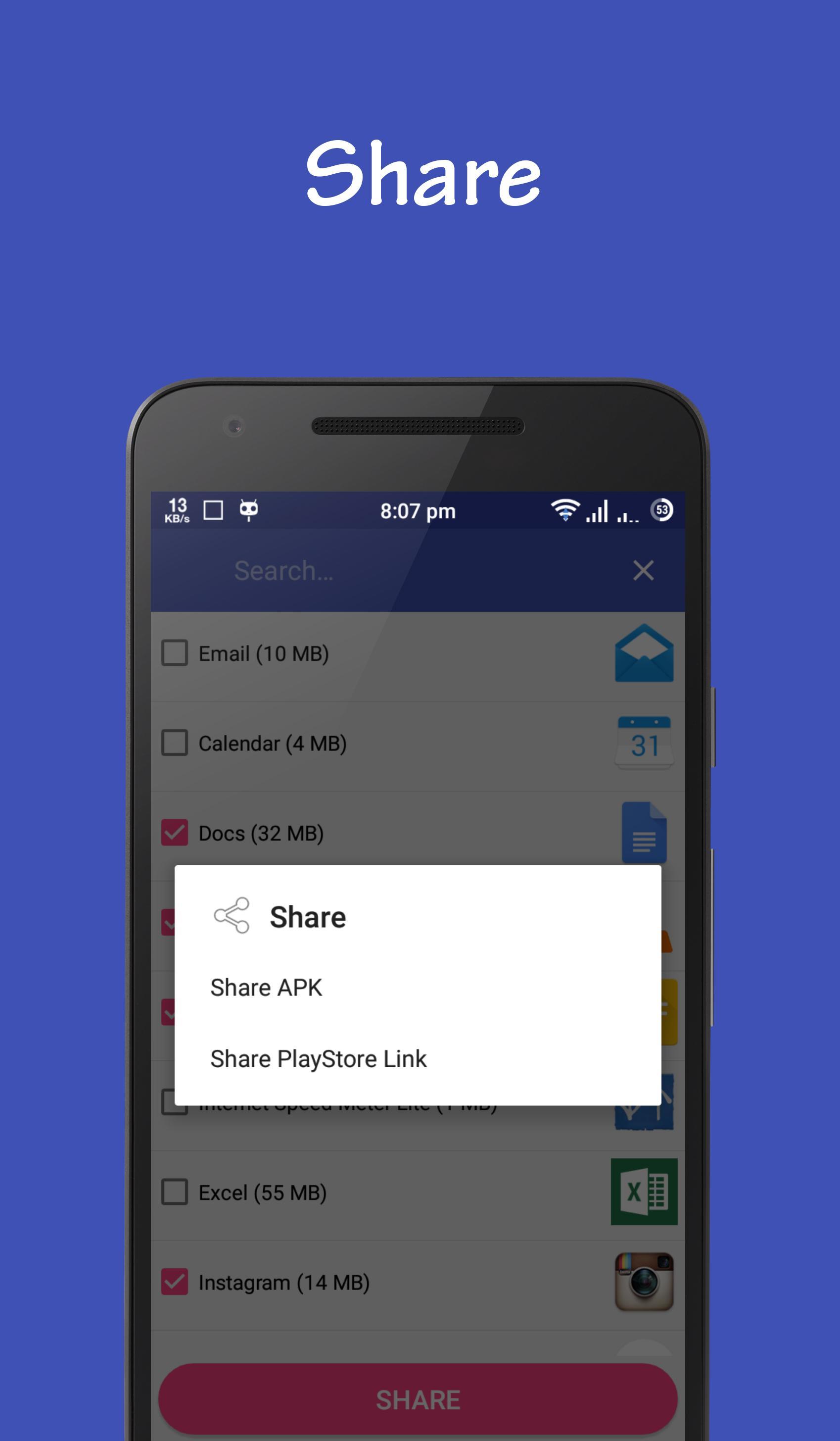 Description of Apk Share : Share your apk using mail and wifi