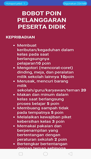 Aplikasi di desain untuk penggunaan poin viewer dengan tujuan mempermudah semua orang mengetahui seberapa taat putra putri mereka terhadap peraturan dan tata tertib sekolah. Melalui aplikasi ini bisa diketahui secara realtime poin pelanggaran yang dilakukan oleh siswa dan laporan kehadiran secara realtime serta dapat mengetahui info terkini mengenai kegiatan sekolah