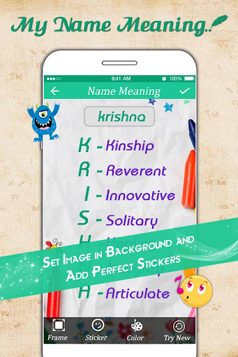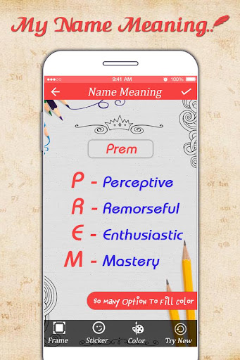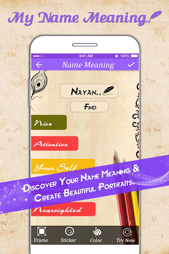 - Just Start app and insert your name to generate My Name Meaning