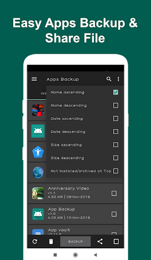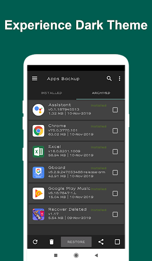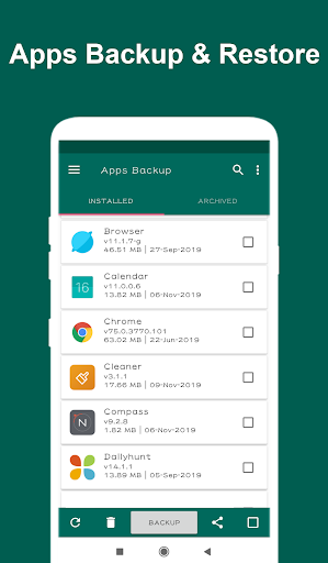 Apps Backup and Restore is used to backup your installed apps to your internal/SD card and restore backup-ed apps.