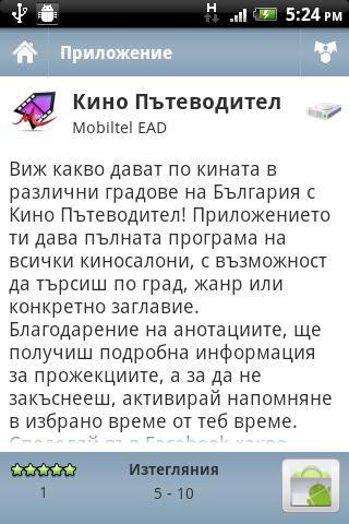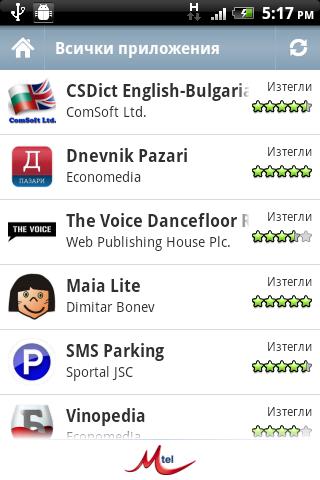 Android ? App Center , . , Android Market. , . . App Center . : , , , app center, mtel, mtel, bulgariaYou have an Android phone and you wonder what bulgarian apps are worth downloading? Well, we have a solution for you In App Center you will find a selection of local application, which we update on a weekly base and strongly recommend to you. You can browse them, read info about them, share them with friends and, of course, download them in a quick manner directly from Android Market. This way you do not need to search Bulgarian apps by name or key word, and moreover you have them in one place. Try App Center now and look for yourselfThe application is in Bulgarian language only.Applications in App Center are updated on a weekly basis. Key words: , , , app center, mtel, mtel, Bulgaria