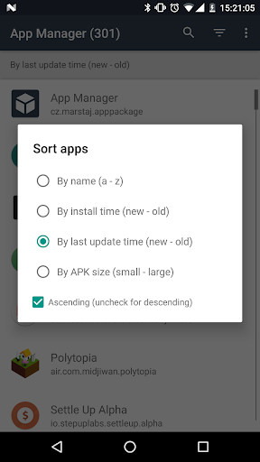 - Added option to sort apps by APK size