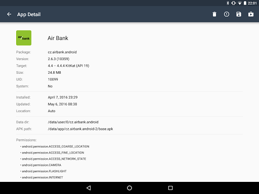 App Manager allows you to view app's permissions, install and update time, version, package name, as well as size and where it stores its data. See what system applications are preinstalled on your phone and which were downloaded from Play Store. Easily open Play Store listings, uninstall unwanted apps or backup their installation files (APK) so you can reinstall them later any time later or share them with your friends.
