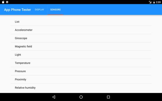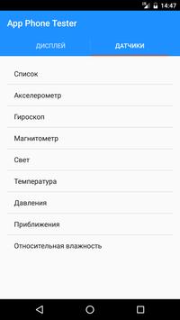 App Phone Tester бесплатное приложения, которое позволяет узнать полную информацию о датчиках, установленных в устройстве, получать показания датчиков в реальном времени, а также проводить тесты для проверки экрана.