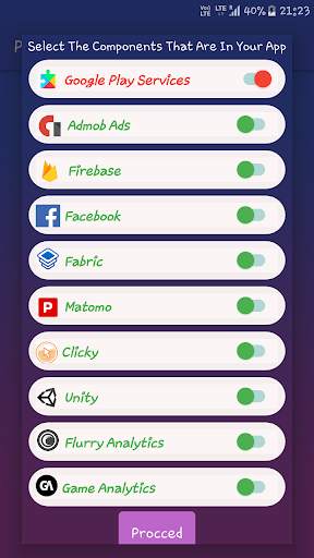 This App Is Dedicated To The Android Apps Developer Who wants to create A Privacy Policy For There Apps. The App Gives You A Wide Range Of Selection Of Services That You Have Used In Your App.