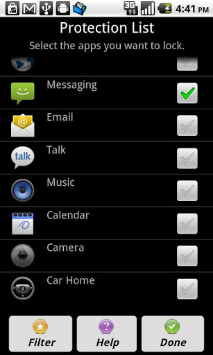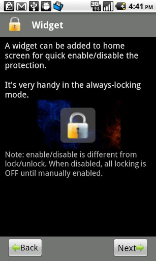 Ultimate privacy protection tool for Android Lock your SMS,Mail,Photo,MarketLock any application on your phone: SMS, Message, Gmail, photo Gallery, Market..any app u chooseYou can choose to only lock sensitive apps, while leaving other apps unlocked. No more worries when your friends have your phone.A Must Have AppGoogle Featured AppThis app can lock your private messages and pictures without locking the whole phone. Better than vault apps Not a Simple KeyguardFEATURES: Lock with either password or pattern Automatic Locking Mode and Manual Locking Mode Locale Plugin and Tasker Plugin included Widget for quick lockingunlocking Buildin Password Recovery Powerful and CustomizedGive it a try and you will LOVE it:Version Note:This is a free trial version which last for seven days. Please get the Pro version after expiration.