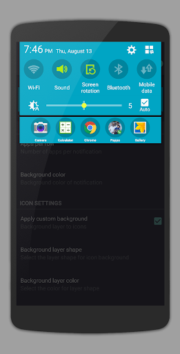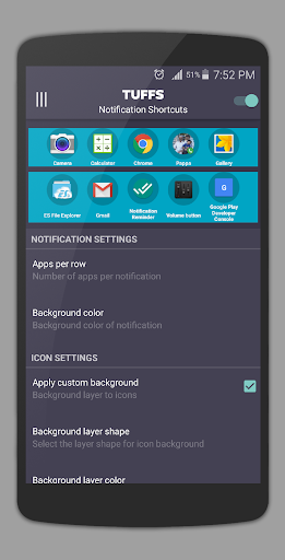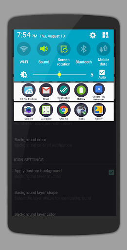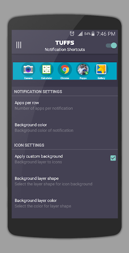 puts apps shortcuts to quickly access them. Application shortcuts will remain on top of notification all the time.
