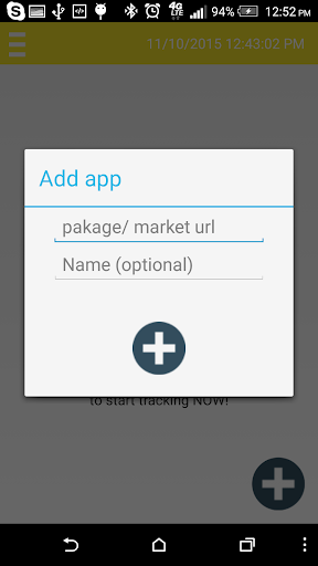 Open App Tracker and click on add button to input your 1st application package name to track.