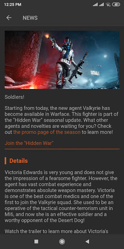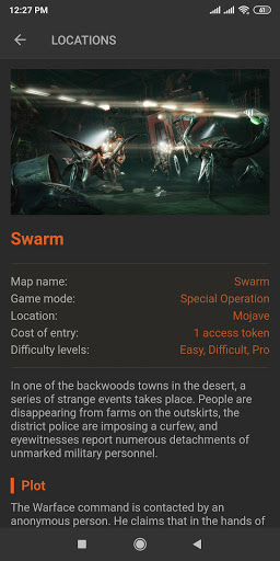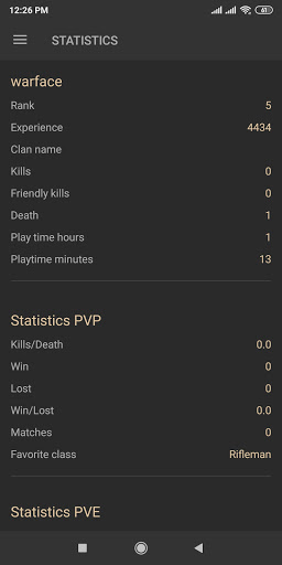 The application contains information about weapons, badges, modules, ranks of the project Warface.