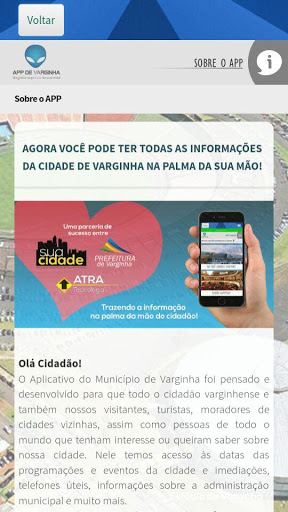 O Aplicativo do Município de Varginha foi pensado e desenvolvido para que todo o cidadão varginhense e também nossos visitantes, turistas, moradores de cidades vizinhas, assim como pessoas de todo o mundo que tenham interesse ou queiram saber sobre nossa cidade. Nele temos acesso às datas das programações e eventos da cidade e imediações, telefones úteis, informações sobre a administração municipal e muito mais. Aproveite tudo o que o aplicativo pode te oferecer! E o melhor disso tudo! É GRÁTIS!