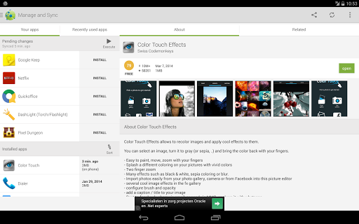 - Fast sync widget to access AppBrain from the desktop and backup your apps to the cloud