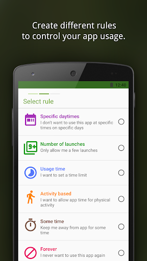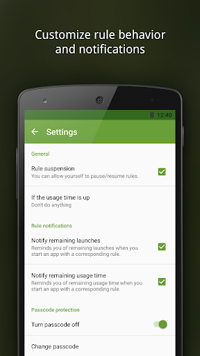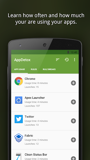 Every time you violate one of your own rules, AppDetox will remind you to take a break and stop your heavy app usage. You can also keep track of these violations in a log. Some people are using AppDetox for parental control of their kid's screen time.