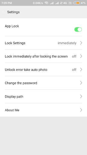 For application password, open the AppLock, click the Settings menu and choose Change Password