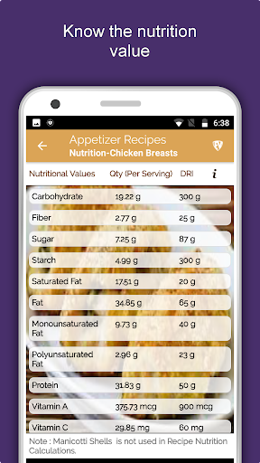 *NUTRITIONAL value of all Appetizer, Starter & Snack recipes and all ingredients.