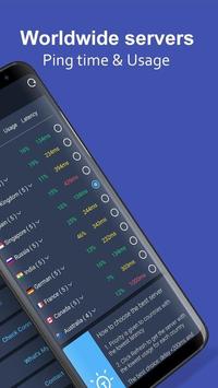 ★ Very Fast, will connect to the fastest VPN proxy server, show latency (ping time) and VPN Usage rate. that help you to select fittest VPN server.