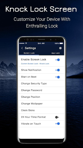 Create a pattern on knock to secure your phone screen. There are four knocks set in a square pattern. You can create any Lock Screen App pattern of 4 knocks to secure your mobile screen.