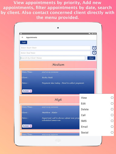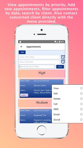 Welcome to Appointment Manager . A app designed to manage your clients & appointments easily . Now schedule customer appointments with ease using the list screen or calender management screen.