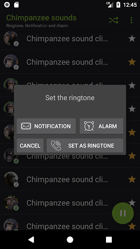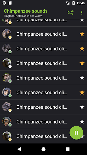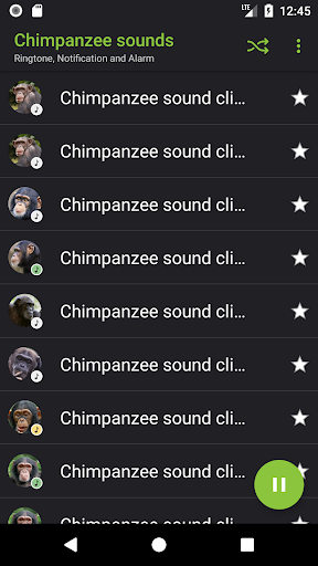 Chimpanzee sound clips and ringtones. free and easy to use. App Features: - Play/Stop - Random sound - Offline - Favorites - Auto replay - Set as ringtone, notification and alarm clock.