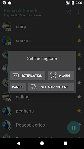 Peacock or Peafowl sound and ringtones, free and easy to use. App Features: - Play/Stop, random sound - Offline - Favorites - Auto replay - Set as ringtone, notification and alarm clock.
