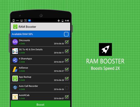 Ram Booster is also very useful feature of Apps Backup & Booster which will help you to keep your Android phone at the optimal level,at one click you can clear your all unused RAM from the RAM Booster,Service in this feature keep tracking RAM used by phone & notifies you when it cross some specific limit,This will Help you in your deceive Battery Saving