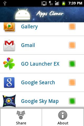 App Cloner for android Have you run into a situation when one of your friends has bought a new Android phone and you wish to share all the cool apps with you in one go? Apps like Appbrain enable sharing of apps with a loooong process involving your friends also downloading Appbrain in their phones. Don39;t you think there should be a simpler way?Though there are some apps in the market which enable to share individual apps, none have the option to select a list a apps to share.Sharing multiple apps with your friends is possible easily now with Apps Cloner.Now share your apps, the simpler and cooler way