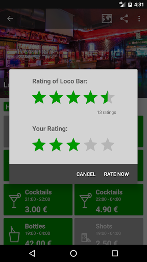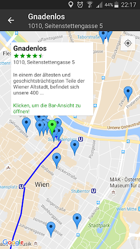 The map now also shows the description and the rating of the bar and via click onto the bar icon the detailed bar view is shown.