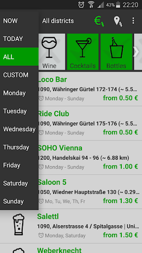 Not it's possible to select a point in time for the Happy-Hour filter (i.e. Saturday at 21:00 o'clock).