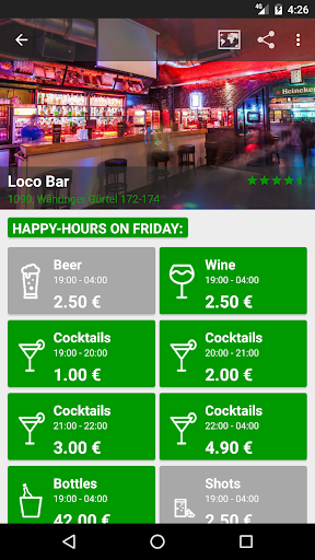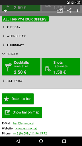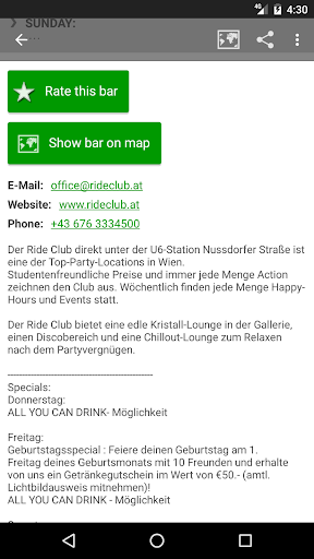 x) Inform yourself about the bar (address, GSP-coordinates, telephone number, email, website, rating)