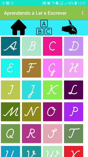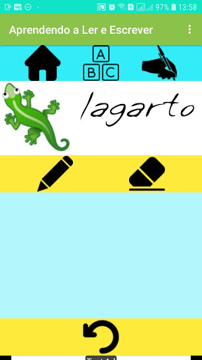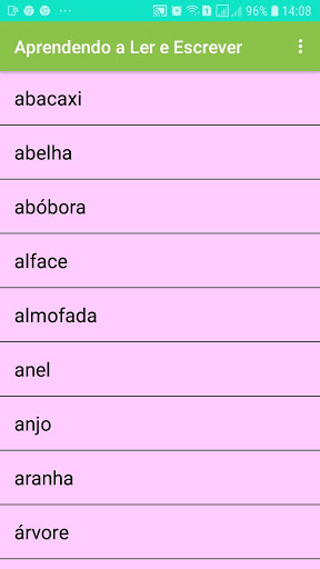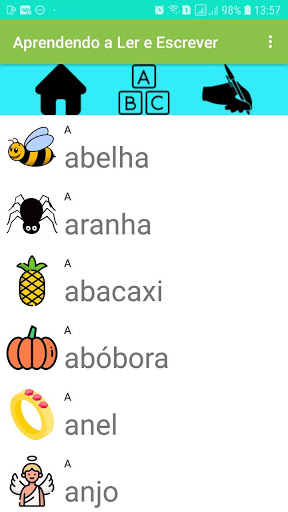 Pratique a caligrafia das letras do alfabeto e de mais de 200 palavras. Esse aplicativo é muito útil para quem está aprendendo a ler. Apresenta as palavras por meio de imagens, com sua pronúncia e grafia. Não precisa de acesso à internet. Use em qualquer lugar. Clique sobre a palavra e o aplicativo "diz" o nome dela. Clique na letra do alfabeto e o aplicativo "fala" o nome da letra.