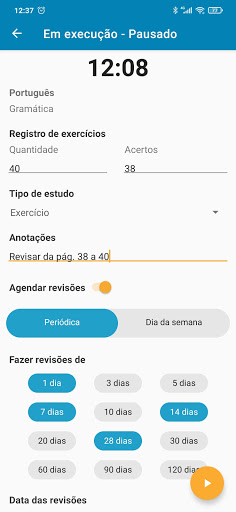 - Pacote "Revisão de estudos", agende suas revisões automaticamente após finalizar uma atividade de estudos. Você poderá agendar um dia específico da semana (todas as sextas-feiras por exemplo) para realizar suas revisões ou especificar intervalos de 1 dia, 1 semana, 30 dias, você decide!
