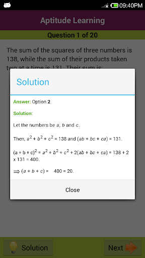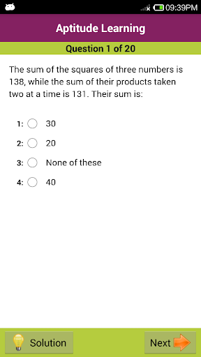 Many aptitude questions here are taken from the previous year question papers by our experts. We have provide the tips and shortcuts in answer section to solve the problems easily. Also with question patterns for campus interview aptitude test preparation for job placement at TCS, CTS, Wipro, Infosys, Accenture, Virtusa, etc. The shortcuts in this app require no special maths ability. If you can do ordinary arithmetic, you will have no problem with these methods. There are no complicated formulas. For each problem, app provides an explanation of the method & a step-by-step solution. This offline app is a starting point for Quantitative Aptitude Preparation.
