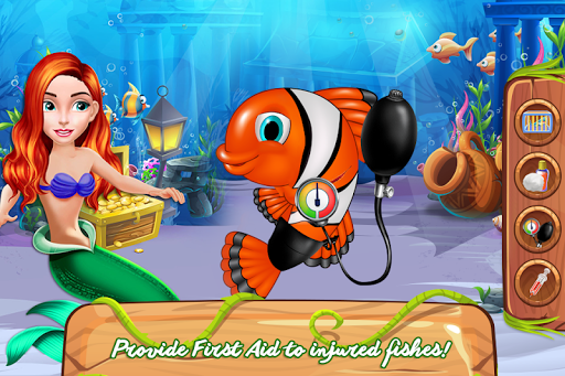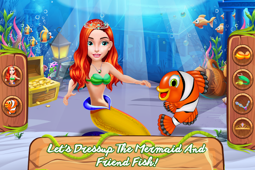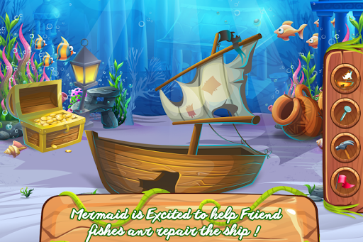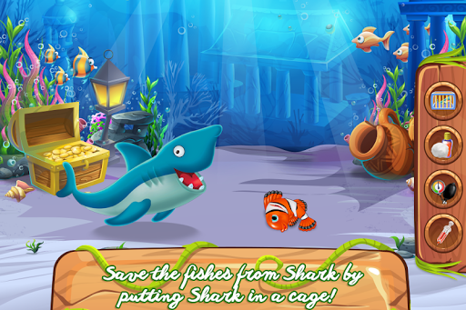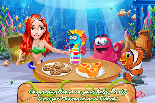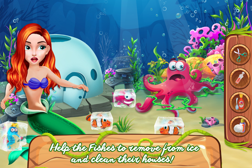 In the deep blue sea, you must always have allies because whether you like it or one there are certain dangers you won't be able to face alone and this is exactly what this game promotes. Working in a team might be the key to get out of troubles. This fish game has an interesting story behind that will motivate you to help out some worried fellows. It seems like the fishes are trapped and the only way for them to be set free is for you to help them. As you can see there are some gigantic ice cubs where they are stuck and you will have to boil some water to melt it. To prepare the home for the upcoming party you will clean the place from the dirt and garbage. Throw away the stinky trash and swipe the dust. Redecorate the house and go in the search for that legendary rescue. Once all of them are reunited you should move to the dressing up part in which you will choose a suitable look for the mermaid and the fish too. Pick the outift that you like the most and add some sparkling accessories, like a crown. Now all that is left is the invitation to be written and sent. The party should start and you will ensure a pleasant environment with cool music and delicious cookie plates. Serve them all and find your reward in their joy.