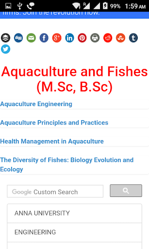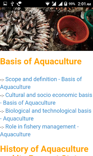 Online study course for Aquaculture. Each subjects contain various Topics, Questions, description under many Topics/Units/Chapter/Section.