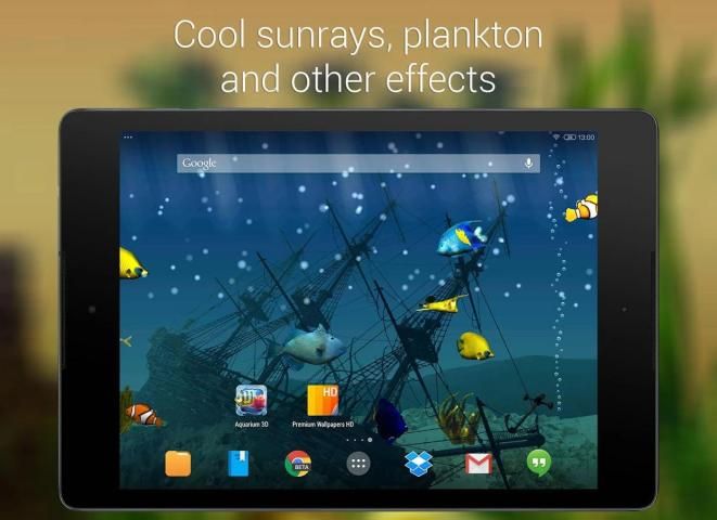 - free live wallpaper with life-like animated 3D fishes, HD backgrounds, plants, cool effects like bubbles, sunrays and plankton and many more. If you like aquariums, corals, exotic fishes or just beautiful scenes which you can just enjoy looking at - then it’s the right app for you!